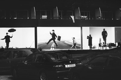 ultimar, было бы хорошо, конечно, но мне тут нравится, что живой человечек стоит в тени, за счёт чего смотрится тоже как черный персонаж постеров. И как по мне, то для него не хватает не зонтика, а шляпы)