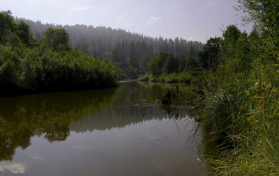 Плотный слой тумана укрыл тайгу и только в 10 час.утра он начал рассеиваться