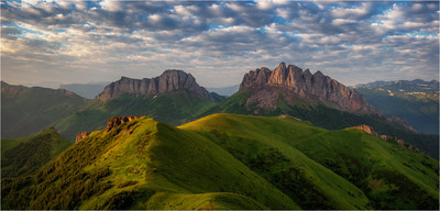 Перевал Чертовы Ворота. Перевал Чертовы Ворота образуют вершина горы Восточный Ачешбок и горы Западный Ачешбок. Перевал Чертовы Ворота выглядит грандиозно, отвесные скалы огромны, достигают трехсотметровой высоты, стены этих гор длиною около пяти километров с полукилометровым входом по середине, стоят среди альпийских лугов. Западный Ачешбок (2448) является высшей точкой передового хребта. |