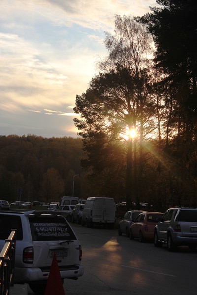 Несколько новых домов и выезд из нового двора на шоссе.