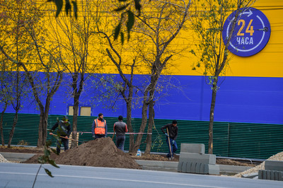 город, синий, жёлтый, зелёный