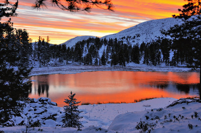Бурлев Виктор, озеро огненное. Цвета чистые, насыщенные, редкое сочетание.