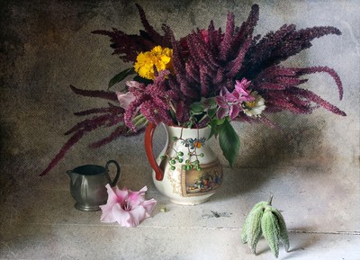 фон и цветы отлично дополняют друг друга. Я не фанат натюрмортов, но этот очень хорош