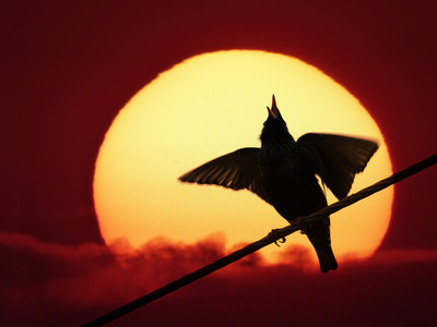 , фото арт - на снимок с солнцем наложен снимок с птицей в режиме "жёсткий свет" .