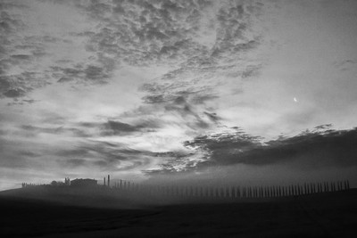 Месяц над кипарисами у Кастильон Д'Орча весной 2014