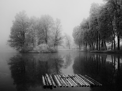 Плот плавает в пруду середниковском летом 2015