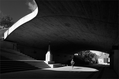Альберт, хороша! Как столбы-фонари перекликаются. Но я за основную. От геометрии пространства ничто не отвлекает. А человек - изюминка в булке.