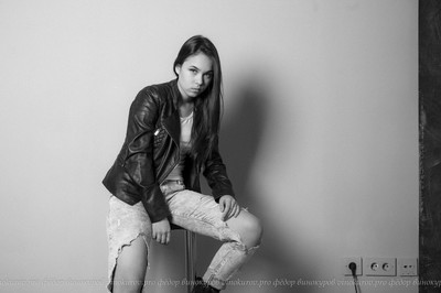 портрет девушки сидящей на стуле на фоне стены с розетками