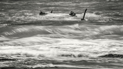 Затонувшая лодка на море