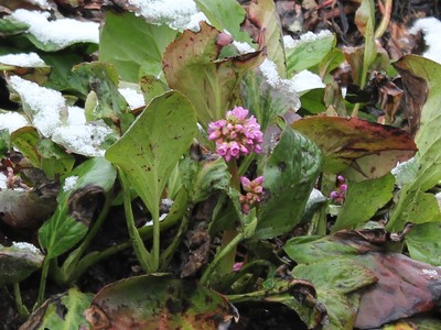 Первые цветы бадана. Бадан дикорастущее растение с богатым спектром биологически активных веществ в различных его частях. В начале 21 столетия началось введение в декоративные культуры городов. Его скромный цветок оказался пригож в букете с нарциссами и тюльпанами. |