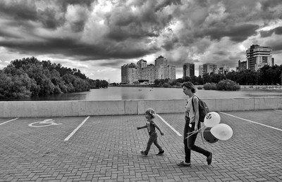 , бесстрашно идёт на праздник в непогоду....