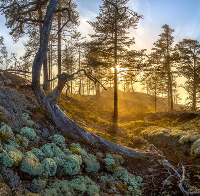 Золотой лес Мы высадились на небольшой островок с сосновым лесом. Из-за закатного солнца туман разгорался золотом. Сосны купались в этом сиянии, а на земле мох-ягель пушистым бирюзовым ковром ластился к рельефу скального острова. Яркая синева неба только обогащала палитру Природы. Когда моему взору открывается столь редкое природное явление - туманный закат, возникает ощущение, что находишься внутри картины, что видишь те детские сны, когда всё было чисто и ярко, когда всё хорошо и новое ждет впереди, когда ты не знаешь начала и конца, и живёшь именно сейчас, этим волшебным моментом! Карелия. Ладожское озеро. Начало июня, 2017 года. На переднем плане мох-ягель. Набираю группу на следующий фототур, который состоится 1-4 июля. Подробности здесь https://vk.com/topic-69994899_35719057 (контакт) и https://www.facebook.com/groups/1755505914709044/ (фейсбук). |