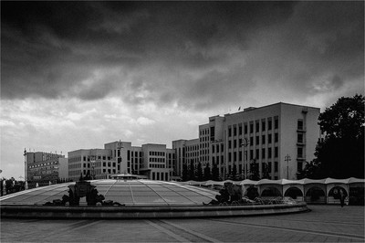 назвать его следовало бы не "Тучи над Минском", а "Переконтрасная *опа над Минском". .. Ни окон ни дверей, только хмурые шумы в кадре. Вместо елей, черная дырка (кстати вот идея для флешмобе - черная дыра), окна зияют черными провалами, геометрия здания в разлет, того и глядишь рассыплется, словно карточный домик. Где тут Минск, где там какие тучи... шумы, одни шумы, ... Мне бы было бы стыдно минчанам показать такой кадр их города! |