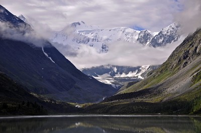 Туман в горах Алтая (Аккемское озеро и гора Белуха)