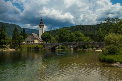 На озере... Церковь Иоана Крестителя - одна из достопримечательностей Бохини. Она не просто живописна. Оказывается, это строение еще и является культурным памятником: в соборе строгого готического стиля хранятся фрески, изготовленные в 14 столетии, на которых изображены десять видов занятий местного населения. |