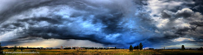Горизонтальная панорама неба. Вышел как-то прогуляться в гипермаркет "Лента", что на пустыре за моим домом...