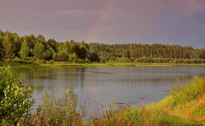 Гроза прошла и солнце выглянуло, появилась радуга.