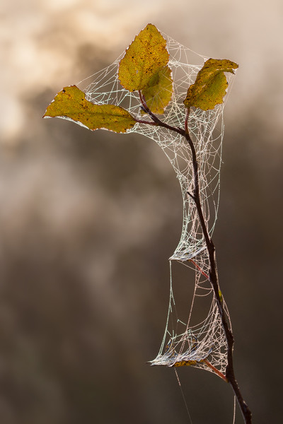 веточка осины, опутанная паутинкой