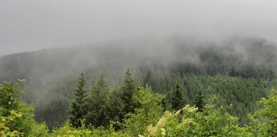 Противоположный склон накрыло облаком туманным.