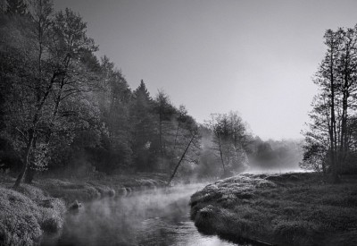Туман ч/б отлично подчеркивается - создает эффект задымленности!!! в цвете такого не будет!!!... лично мне такой "дымок" очень даже!!!... но только над(или в присутствии) речкой - так сказать негорючим веществом... (иначе пожар ассоциируется...