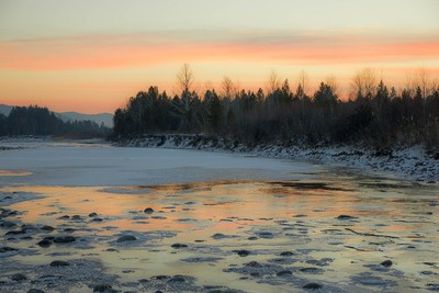 закат, протока реки