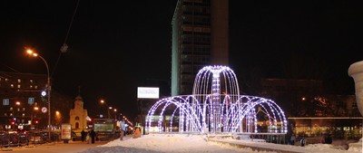 Световой фонтан в Первомайском сквере Новосибирска.