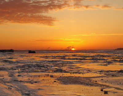 амара, Волга ещё полностью не покрыта льдом,но переправа уже ходит Вот такой был закат 04.01.2018 г