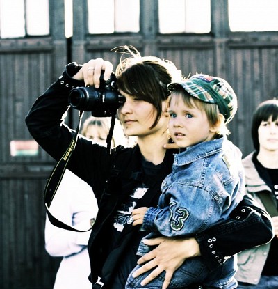 , за аппарат в руке у девушки
