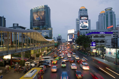 Вечерние сумерки на улице Ratchadamri Road. Бангкок