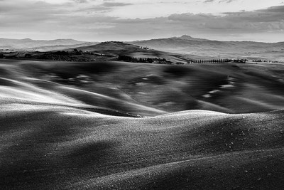 Радикофани вдали за полями у Пьенцы в сумерках осенью 2017
