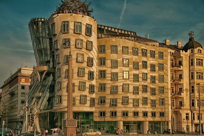 Да,Женя,дом,и,правда,оригинальный..Вот что пишут о нём в википедии-"Танцующий дом — офисное здание в Праге в стиле деконструктивизма, состоит из двух цилиндрических башен: нормальной и деструктивной. Танцующий дом является архитектурной метафорой танцующей пары, в шутку называется «Джинджер и Фред» в честь пары Джинджер Роджерс и Фред Астер."
