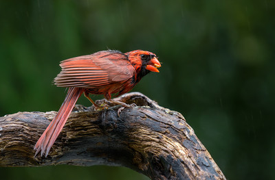 Northern cardinal Северные кардиналы изредка становятся лысыми, теряя все перья на головах и вместо этого демонстрируя черную или темно-серую кожу. Это может быть поразительный внешний вид, но является естественной частью их цикла линьки. Лично я еще ни разу подобного не видел, но этот снимок в какой-то мере может дать представление об этом явлении) |