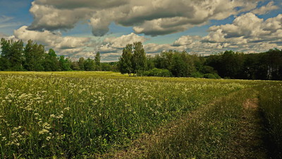 А мне не понравилось! Композиция невыразительная. Дорожка сдвинута вправо, никуда не ведёт. Трава и деревья хороши по цвету и фактуре, а вот облака перефактурены и спорят с землёй, видно, что автор перестарался в обработке. ИМХО. Извините!