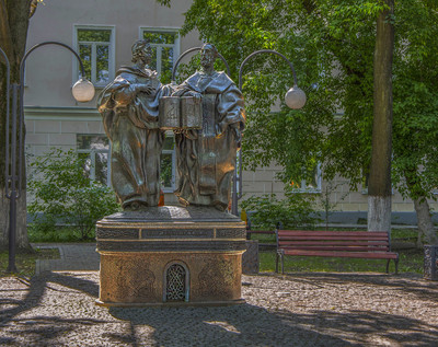 "Ученье - свет!" Памятник святым равноапостольным Кириллу и Мефодию в Твери. Памятник Кириллу и Мефодию был торжественно открыт 27 мая 2014 года в сквере филологического факультета Тверского государственного университета. Это событие было приурочено к VI Международному фестивалю славянской поэзии «Поющие письмена». В 2009 году город Тверь стал всероссийским центром празднования Дней славянской письменности и культуры. |