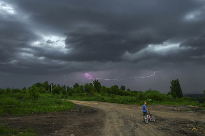 А не страшно мальчику в такую грозу кататься?!!!