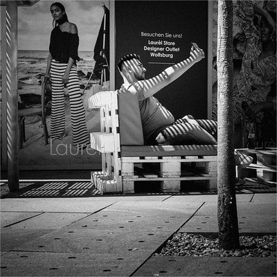 Vladimir Li, и кадрирование более правильное  хотя в цвете перекличка красного сиденья и этикетки на бутылке смотрится тоже интересно. Добавляет многоплановости к полосатости.