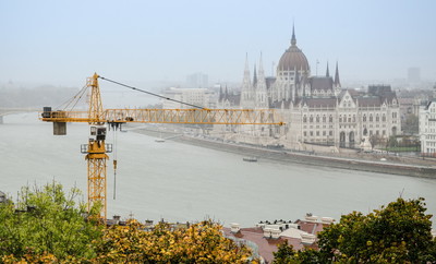 Строительство около канала реки Дунай в столице Венгрии - городе Будапеште.