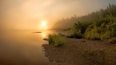 Туманный восход на Нижней Тунгуске. Сентябрь.