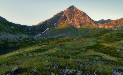 Когда приходит утро оно окрашивает вершины гор тёплым светом