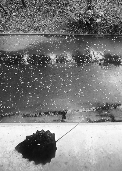 Авторский вариант нравится больше. Вариант И Чо Теперь., стал да, более объемный. Но в нем пропал очень красивый эффект - листья как будто парят над асфальтом в авторском варианте. И к тому же он стал неуравновешенным - правый край перевешивает и центром внимания стал лист. А в авторском - центр - парящие листья. нмв.