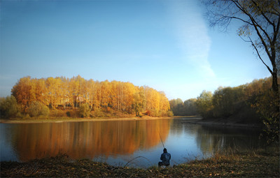 Рыбак в интерьере осени