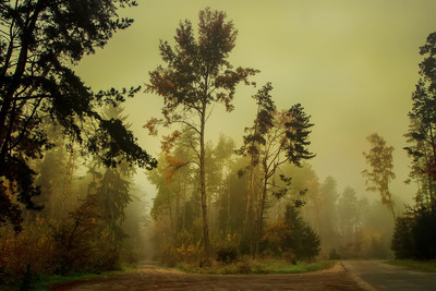 Туман в осенних лесав