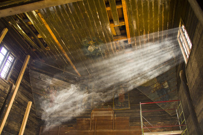 Старая часовня, которая реставрируется? Дым от свечей и лампад?