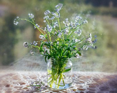 Светлая, "свежая" "утренняя" работа получилась! И незабудки хороши, и отражение в стекле!!!!
