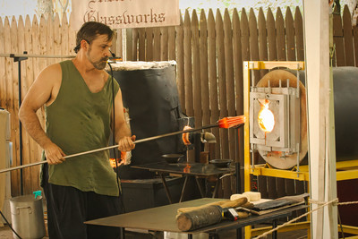Мастера стеклодувы показывают средневековую технологию производства на средневековом фестивале в Нью-Джерси