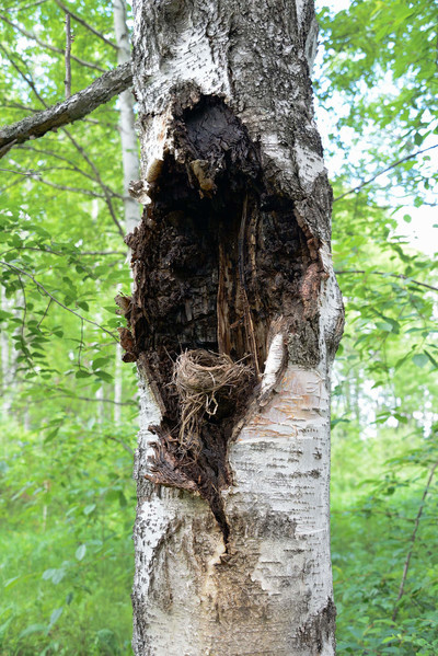 Видимо молния ударила в ветку и выжгла её, а птицы тут как тут!