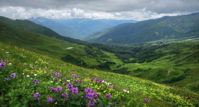 Бархатные склоны, голубые дали и цветы на ПП - красивая работа!