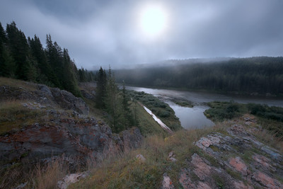 Утро на Чусовой Скалы возле Кына С северной окраины Кына, вдоль русла реки, расположена гряда скал называемых местными - "гребешки". Высота около 50-70 метров. Название вероятно произошло от формы одной из характерных скал в виде плоской плиты выступающей поперек русла реки, как зуб гребешка. На снимке она последняя в ряду. Тут открывается отличный обзор реки и села. В тот день, вернее ночь, мы встали в 4 часа, чтобы снять рассвет, но на поселок опустился такой густой туман, что видимость упала до 50 метров. Рассвет прошел мимо. Туман начал рассеиваться только после 8 утра. Тогда и у нас и получилось сделать серию удачных снимков. |