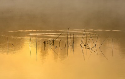 Утром выдра нарезает круги по воде.