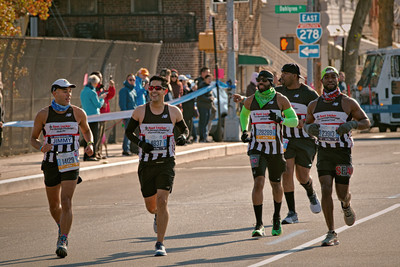 Команда магазина спортивной обуви разогревает публику перед стартом профессиональных бегунов. Нью-Йоркский марафон 2019